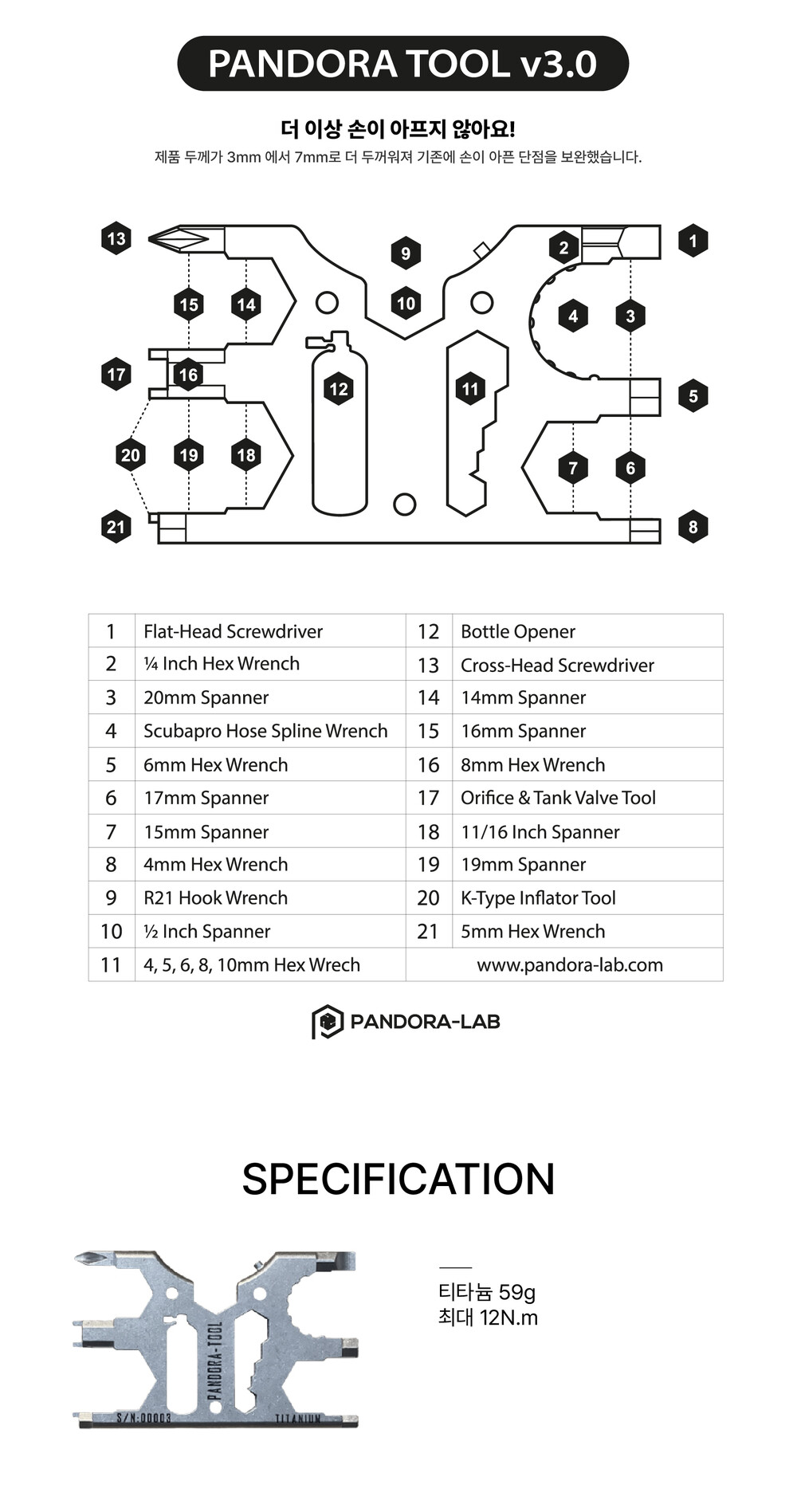 * 상품 상세 사진에서 툴 가운데의 판도라랩 음각은 레이저 각인으로 변경되었습니다.